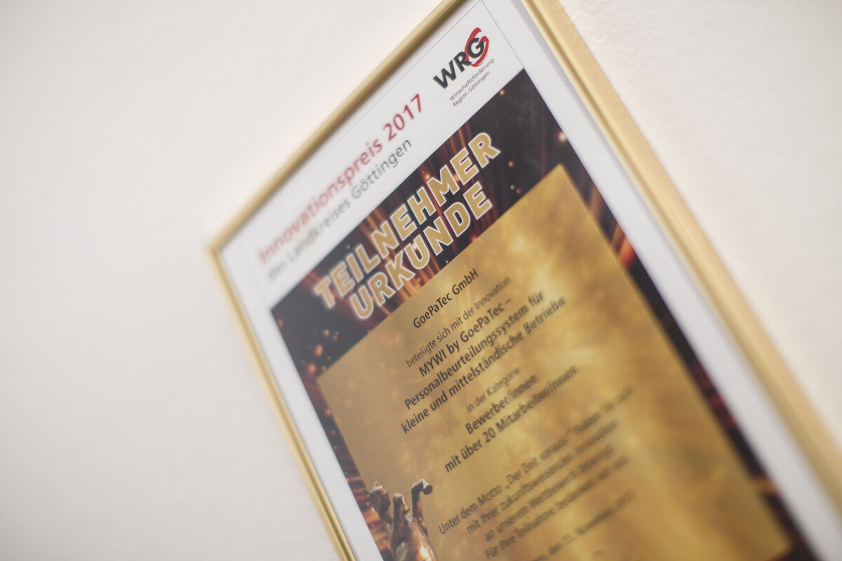 - Auszeichnung der GWG Gesellschaft für Wirtschaftsförderung und Stadtentwicklung Göttingen mbH „Gute Gründer“